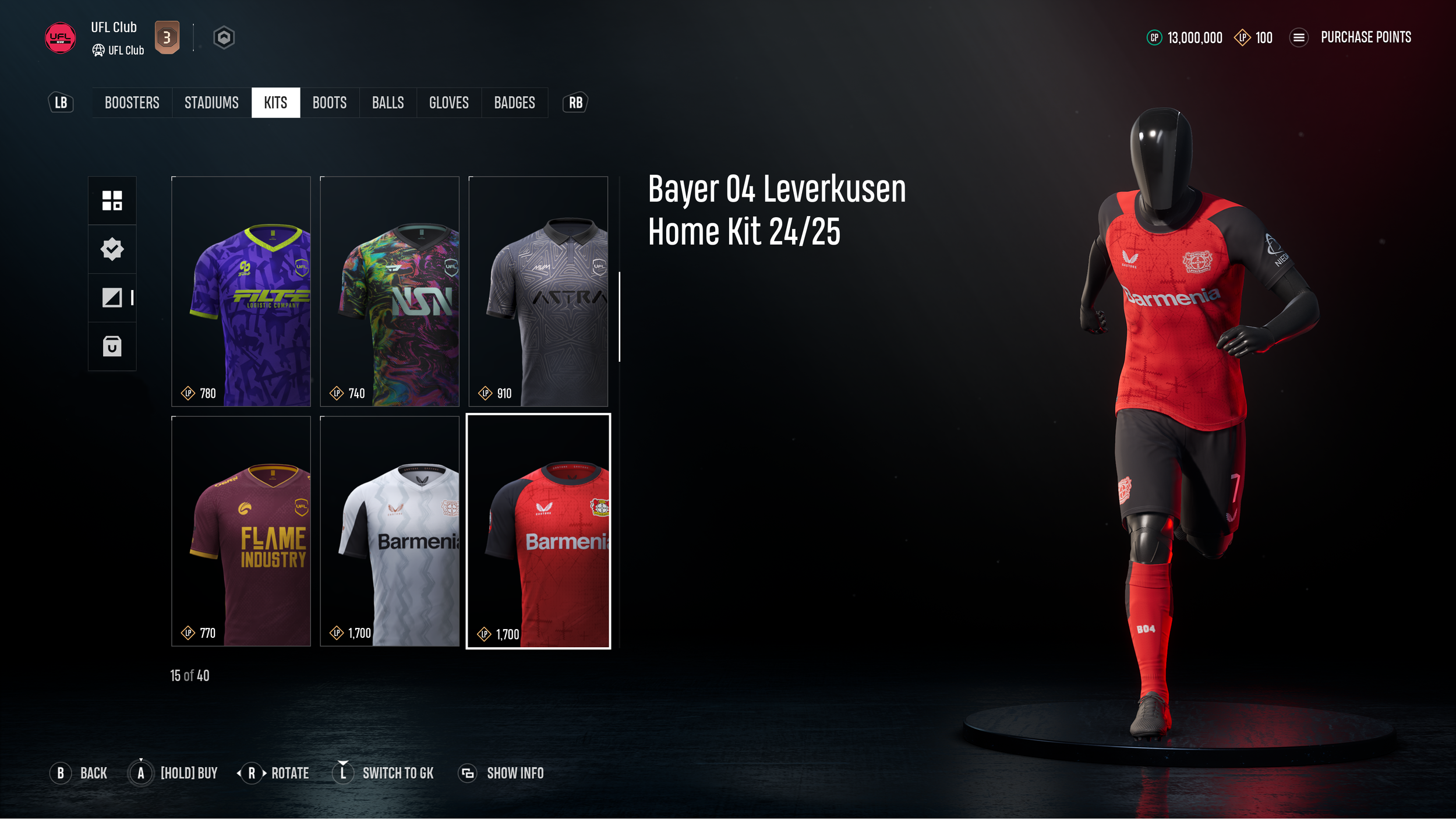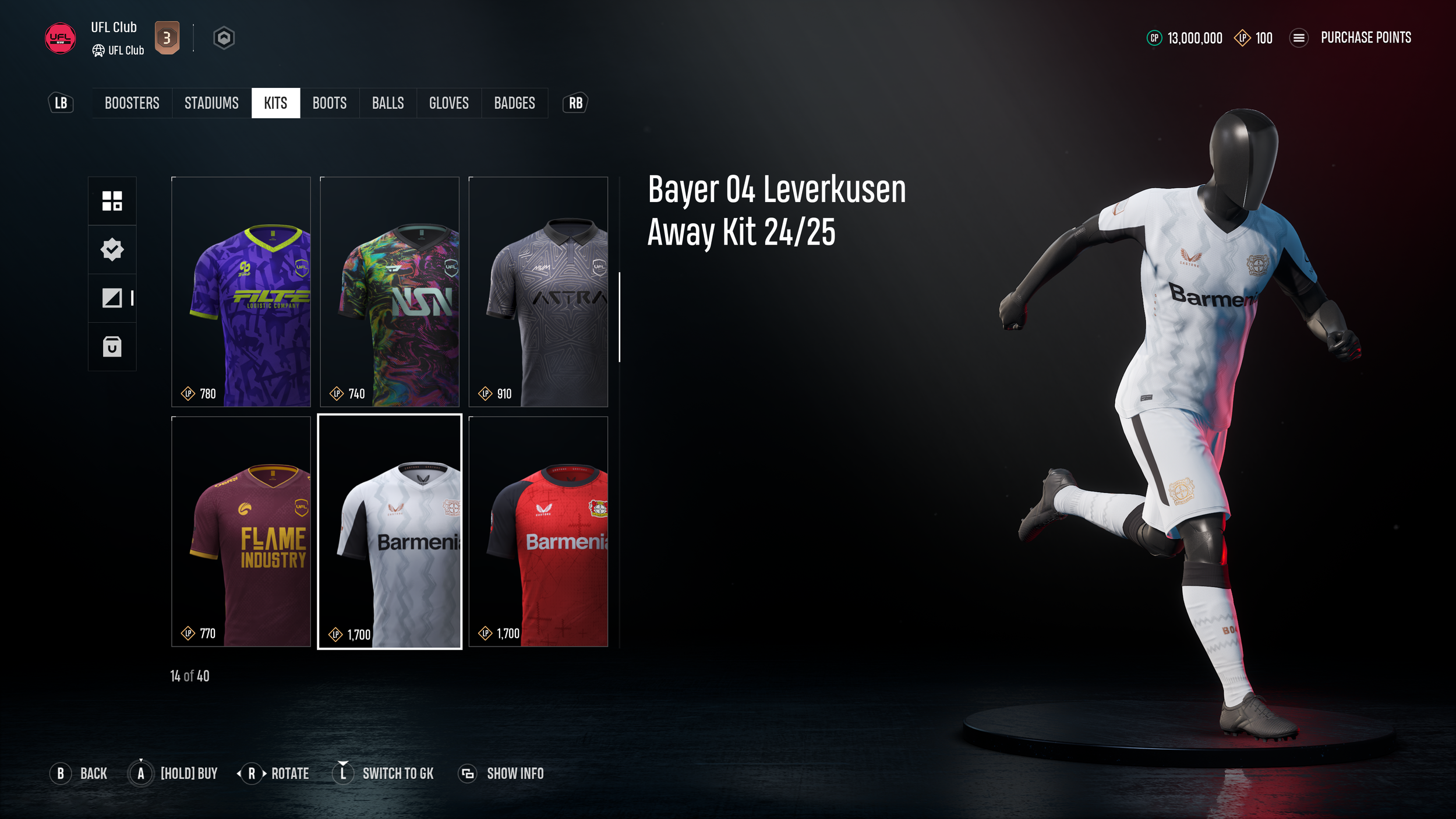 Bayer 04 Leverkusen wurde 1904 gegründet und ist bekannt für seine lange Tradition, die von feinem Angriffsfußball und einer leidenschaftlichen Fanbase geprägt ist. Mit ihren Kits können ihre Fans jetzt in UFL ihre Treue zur Werkself zur Schau stellen und dabei ihrer Mannschaft eine einzigartige Identität verpassen.